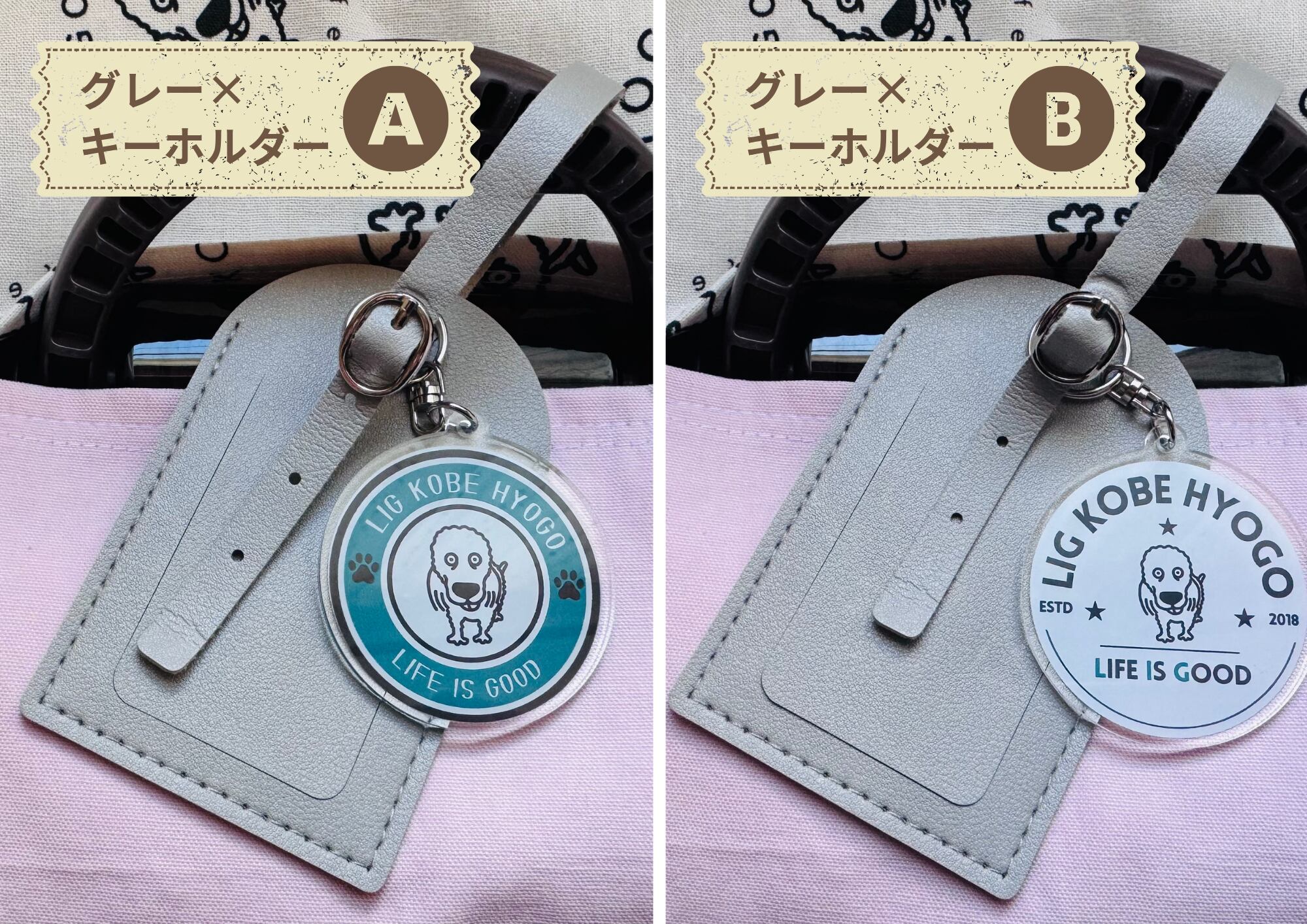 ※タグと一緒についているキーホルダーと、キーホルダーのみのデザインが若干違いますが、