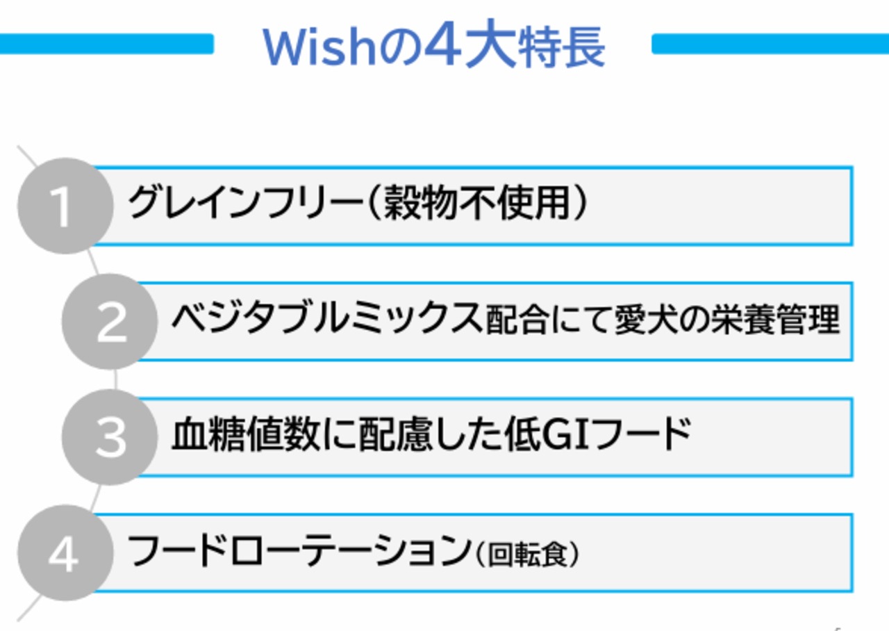 七面鳥肉、七面鳥肉粉、乾燥えんどう豆、乾燥ひよこ豆、えんどう豆粉、鶏脂、ナチュラルフレーバー、乾燥亜麻仁、乾燥トマト粗、乾燥ビートファイバー、ベジタブルミックス(にんじん、セロリ、ビート、パセリ、レタス、クレソン、ほうれん草)、塩、乾燥じゃがいも、サーモンオイル、クランベリー、ブルーベリー、乾燥ケルプ、乾燥チコリ根、酵母培養液、リン酸一水素カルシウム、塩化カリウム、ミネラル類(亜鉛、鉄、マンガン、銅、ヨウ素、コバルト、タンパク化亜鉛、タンパク化鉄、タンパク化銅、タンパク化マンガン、セレン)、塩化コリン、ビタミン類(E、ナイアシン、B1、パントテン酸、A、B6、B2、D3、ビオチン、B12、葉酸)、アスコルビン酸、ユッカフォーム抽出物、乾燥エンテロコッカスフェシウム、乾燥ラクトバチルスアシドフィルス、乾燥アスペルギルスニガー、乾燥トリコデルマ・ロンギブラキアタム、乾燥バチルスサブチルス、酸化防止剤(ミックストコフェロール、クエン酸)